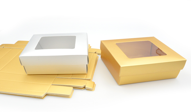 Κομψό κουτί με καπάκι και διάφανο παράθυρο ζελατίνας, ιδανικό για τη δημιουργία εντυπωσιακής μπομπονιέρας γάμου ή βάπτισης. Το διάφανο παράθυρο αναδεικνύει το περιεχόμενο, προσφέροντας προσεγμένη και πολυτελή παρουσίαση.