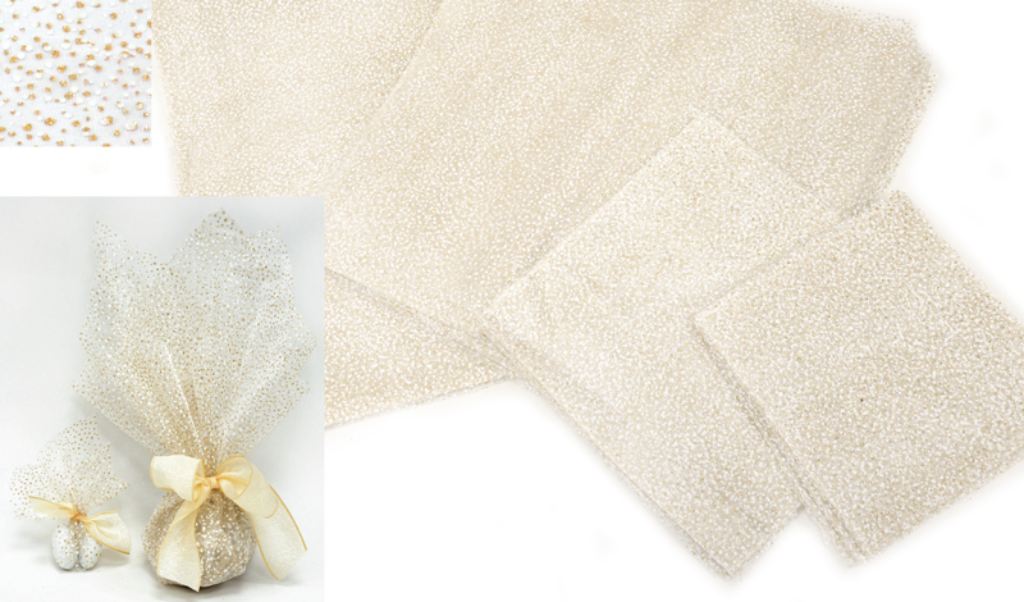 Τούλι 36 x 36 εκ με Άσπρο Πουά & Γκλίτερ | Συσκ. 50τμχ