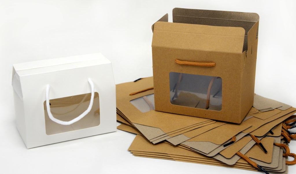 Κομψό και πρακτικό χάρτινο κουτί με διάφανο παράθυρο ζελατίνας και χερούλι κορδόνι, ιδανικό για τη δημιουργία ιδιαίτερης μπομπονιέρας γάμου ή βάπτισης.