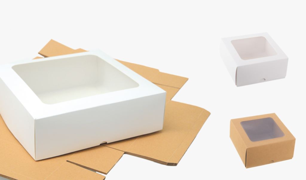 Κομψό τετράγωνο χάρτινο κουτί με καπάκι και διάφανο παράθυρο ζελατίνας, ιδανικό για τη δημιουργία όμορφης μπομπονιέρας γάμου ή βάπτισης.